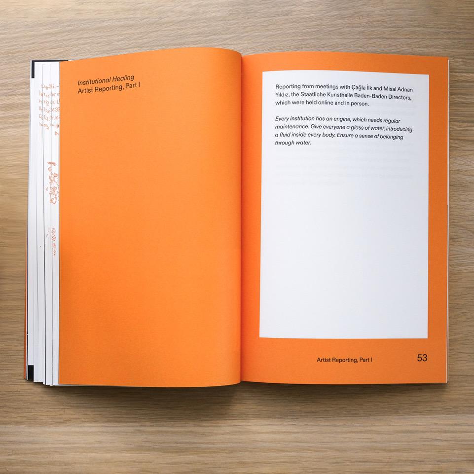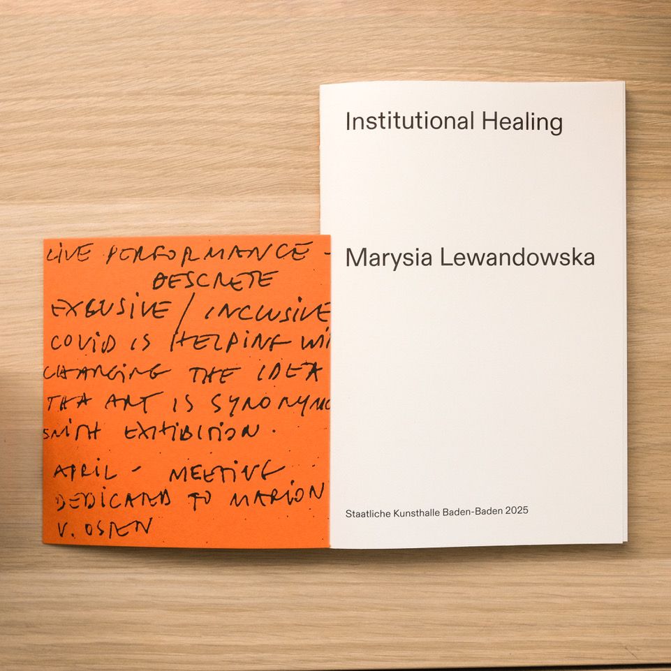 Institutional Healing publication is the outcome of a long term collaboration between Marysia Lewandowska and the Staatliche Kunsthalle Baden-Baden 2020 – 2025. Edited by its former director Çağla Ilk and designed by Karl Stefan Andersson, it brings together conversations, interviews, notes, archival traces, and reflections from Lewandowska’s sustained engagement with the institution. Amongst the contributors are Frances Morris, the former director of Tate Modern.