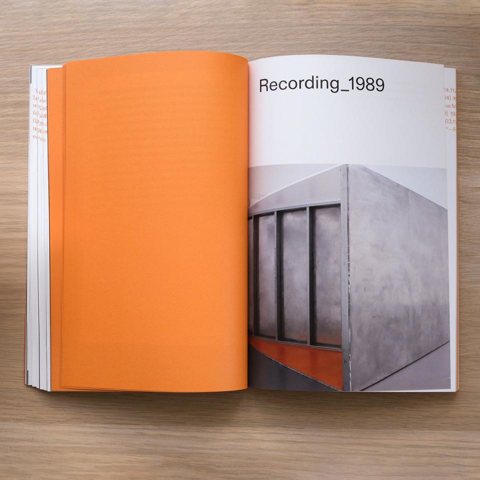 Central to the catalogue are materials related to Recording_1989 – (reviewed here ) an installation presented by Lewandowska at the Kunsthalle in the summer of 2023 curated by Misal Adnan Yildiz and Dominik Busch. Based on a rediscovered audio recording of a 1989 interview between Donald Judd and Jochen Poetter, which Lewandowska helped to release into the public domain; the project explores the artist’s voice, its authority, and place within the institutional memory. The structure which references Judd’s sculptural language, has been developed together with architect Aram Mooradian. Through erecting a live recording studio, Lewandowska proposes the act of conversation. as an active site of healing.